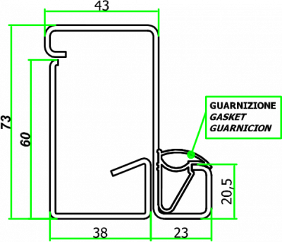 Galvanized steel (UNI EN 10142) with thickness 20/10 and Weight 12 Kg