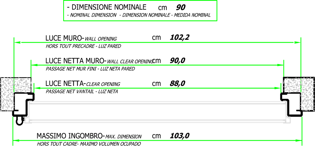 Galvanized steel (UNI EN 10142) with thickness 20/10 and Weight 13 Kg