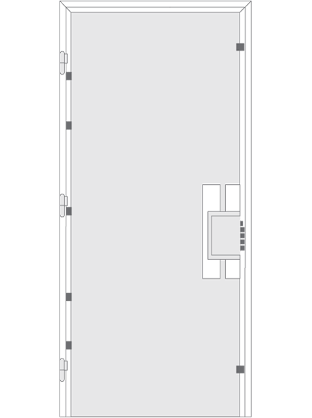 Galvanized steel sheet thickness 15/10 stiffened with n° 2 omega-shaped pieces + lock reinforcement plate thickness 30/10
