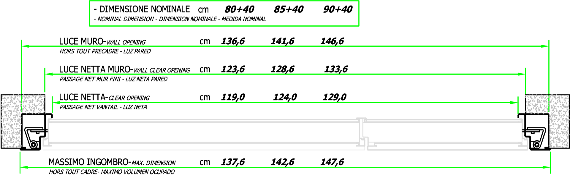 Galvanized steel sheet thickness 15/10 stiffened with n° 2 omega-shaped pieces + lock reinforcement plate thickness 30/10 Weight 65+40 Kg