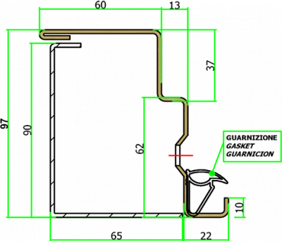 Chapa galvanizada prefilmada de PVC por el lado exterior con guarnición perimétrica de cierre