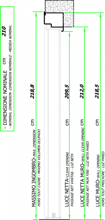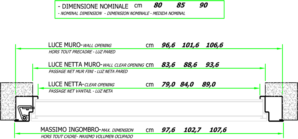 3 bisagras de acero embutidas ocultas registrables en los 3 sentidos con un perno con un diám. de 10 mm (Apertura 120°)