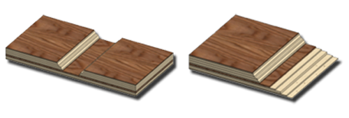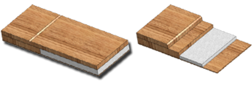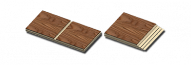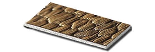 Revêtements en fibres parallèles avec couche bois en surface et couche intermoyenne. Ce type de panneaux combine esthétique excellente avec resistance