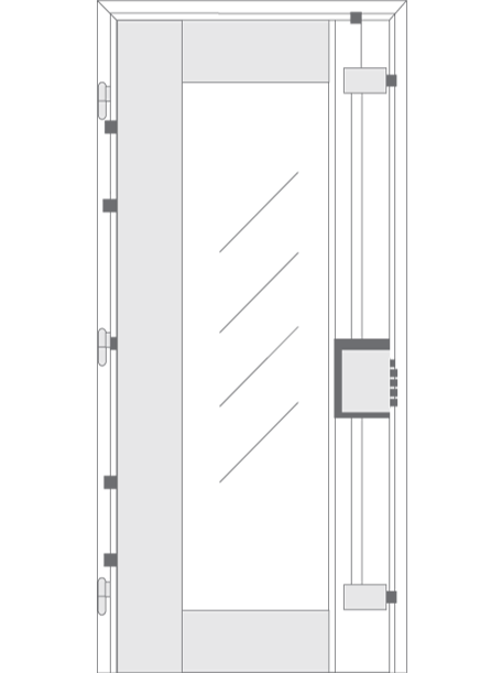 Lastra d'acciaio zincato spessore 15/10 irrigidita da n° 3 strutture + piastra di rinforzo della serratura spessore 30/10 dal peso di 85 Kg + vetro camera antisfondamento basso emissivo (Ud 1,3 W/m²K) spessore 30.66 mm