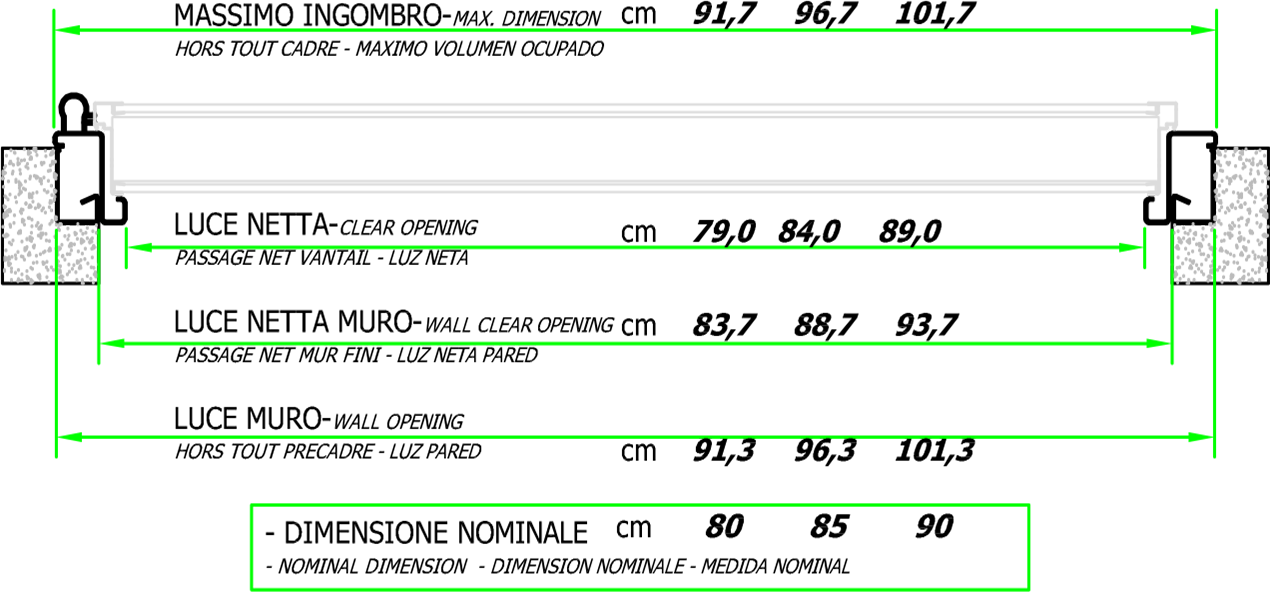 Mediante 8 viti in orizzontale e in verticale + registro dello scrocco
